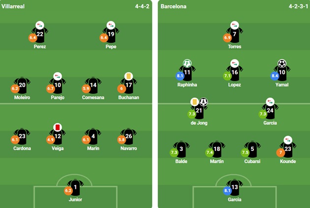 Những phút còn lại chứng kiến sự bất lực của Villarreal. Dù rất nỗ lực, họ chỉ tạo ra được vài tình huống sóng gió lẻ tẻ, trong đó đáng kể nhất là pha bóng cứu thua ngay trên vạch vôi của Cardona để từ chối bàn thắng thứ ba cho Barca. Ngược lại, thủ thành Garcia của Barcelona cũng có ngày thi đấu xuất sắc khi từ chối các nỗ lực của Mikautadze và Pepe, bảo toàn mành lưới cho đội khách.